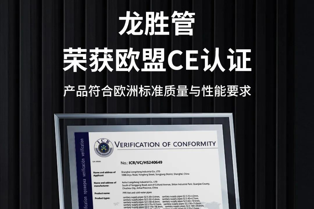 經(jīng)過嚴(yán)格的全方位檢測和多項(xiàng)技術(shù)評估,龍勝管PPR水管產(chǎn)品順利通過歐盟CE認(rèn)證,成功獲得這一打開并進(jìn)入歐洲市場的...